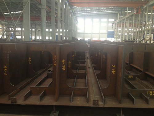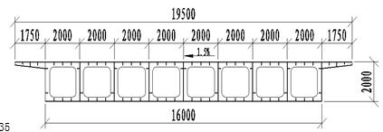 本工程為西咸新區(qū)灃東新城車城西路與西寶高速交叉處立交主線橋,其主線橋為1孔52米單跨簡支鋼箱梁,分左右兩幅設(shè)計。單幅鋼箱梁采用單箱多室直腹板箱梁,梁高2.0米,頂板寬19.5米,每室寬2.0米,懸臂1.75米,底板寬16米,懸臂端部高0.18米,根部高0.35米。梁體橫向等高,腹板鉛直,梁底設(shè)調(diào)平鋼板。