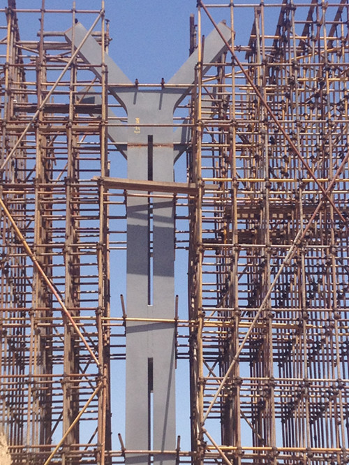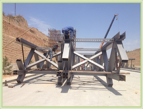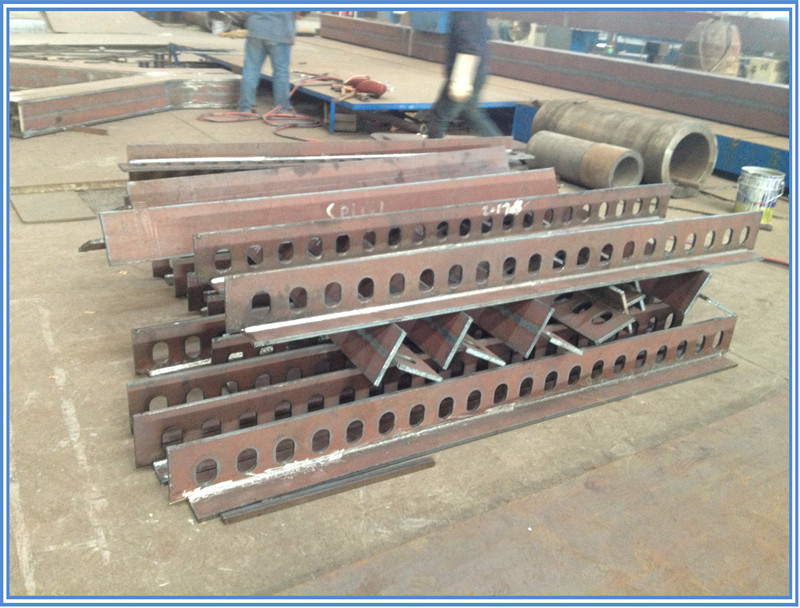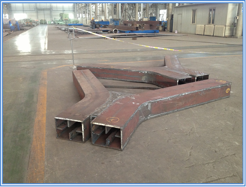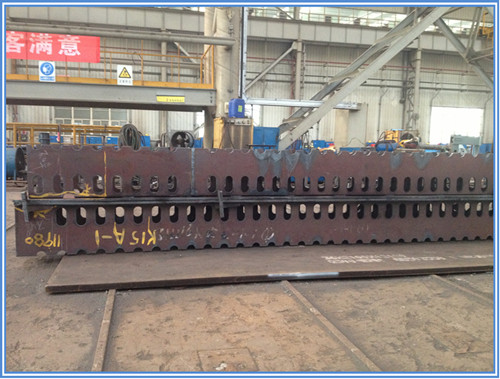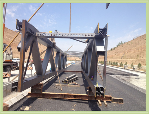 本工程為黃陵至延安高速公路擴能工程一部分,具有試驗性質,其特點為結構新穎多樣、制作工藝復雜。該工程分K15、K16、K18三個分項工程。 K15工程全長96.96米。主體結構為矩形鋼管混凝土組合桁架連續(xù)剛構橋,跨徑布置為24+40+24米,主墩采用PBL加勁型鋼管混凝土橋墩,墩梁剛接。橋臺采用樁借蓋梁輕型橋臺。基礎形式均為穿孔灌注樁基基礎。橋面寬度0.5(護欄)+4.5(橋面)+0.5(護欄)=5.5米,雙向2%的橫坡。汽車載荷等級達公路-II級。上部結構里面布置為三角形腹桿桁架體系,桁高2.5米,桁高與跨徑之比為1/16。共22個節(jié)間,每節(jié)間長4m。截面形式為空間矩形。下部結構主墩主要采用雙肢“Y”形PBL加勁型鋼管混凝土橋墩,墩梁剛接,鋼管內灌注混凝土。 K18部分全長62.08米,橋梁為2*28m管翼緣鋼-混凝土連續(xù)組合橋梁。管翼緣可以采用內填混凝土的圓型或矩形管截面形式,也可采用空心矩形管的截面構造。與傳統(tǒng)鋼板翼緣組合梁相比,這種新型管翼緣組合梁具有明顯的技術優(yōu)勢;腹板高度顯著降低,尖山腹板加勁設置和疲勞細節(jié)數(shù)量;扭轉剛度遠大于鋼板翼緣組合梁,而且橫向連接系數(shù)數(shù)量可顯著減少、尺寸亦可減少,這對提高結構穩(wěn)定性和施工速度、降低建造于維護成本具有重要意義。 我公司主要負責該工程廠內制作。