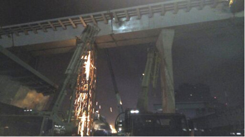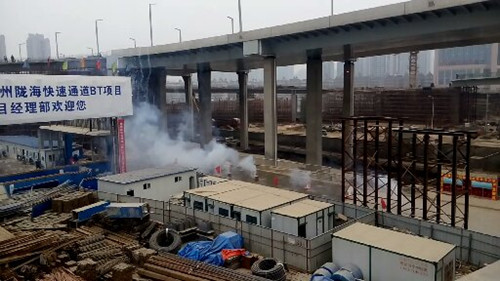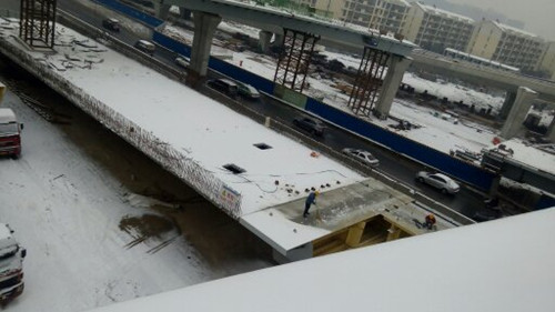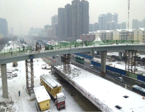圖:隴海路高架快速通道工程施工現(xiàn)場(chǎng)