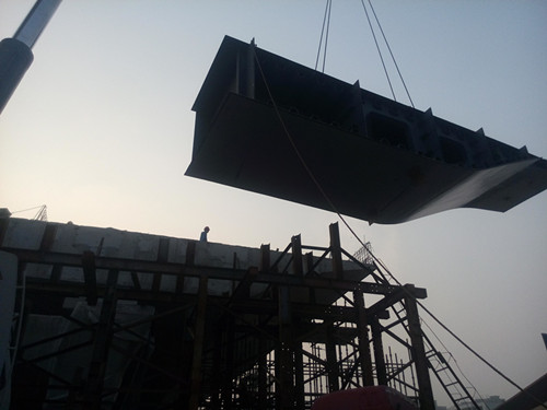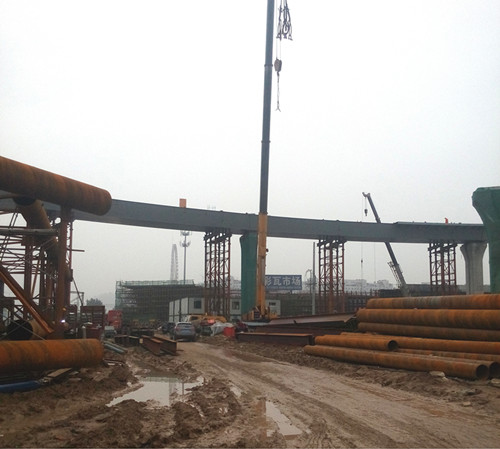 鄭州市隴海路高架快速通道工程“東段”范圍為中州大道-京港澳高速,本標(biāo)段中州大道立交工程西起中州大道西側(cè),東至十里鋪街,主線高架橋梁長(zhǎng)950.347m,雙向六車道,標(biāo)準(zhǔn)橋梁寬度25.5米,中州大道立交共設(shè)10條定向匝道,立交匝道標(biāo)準(zhǔn)橋梁寬度為8.0m、9.0m、13.0m。鋼主梁采用 Q345qD 鋼材。 我公司主要負(fù)責(zé)該工程現(xiàn)場(chǎng)安裝工作。