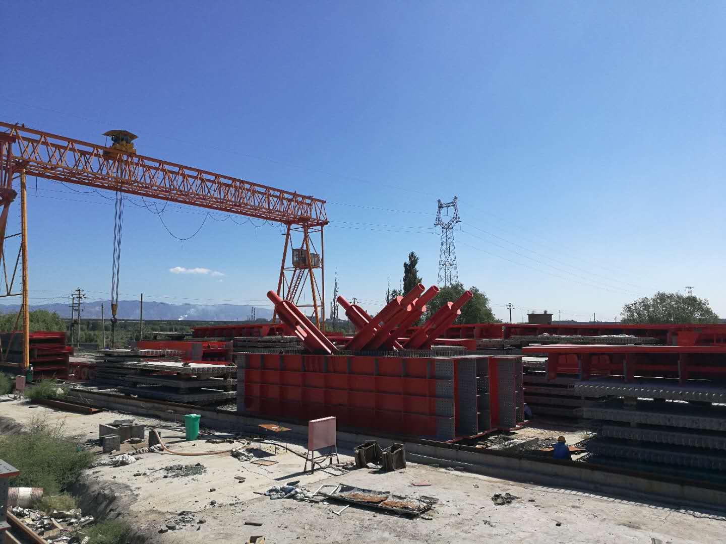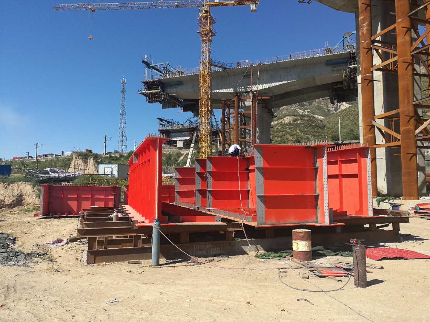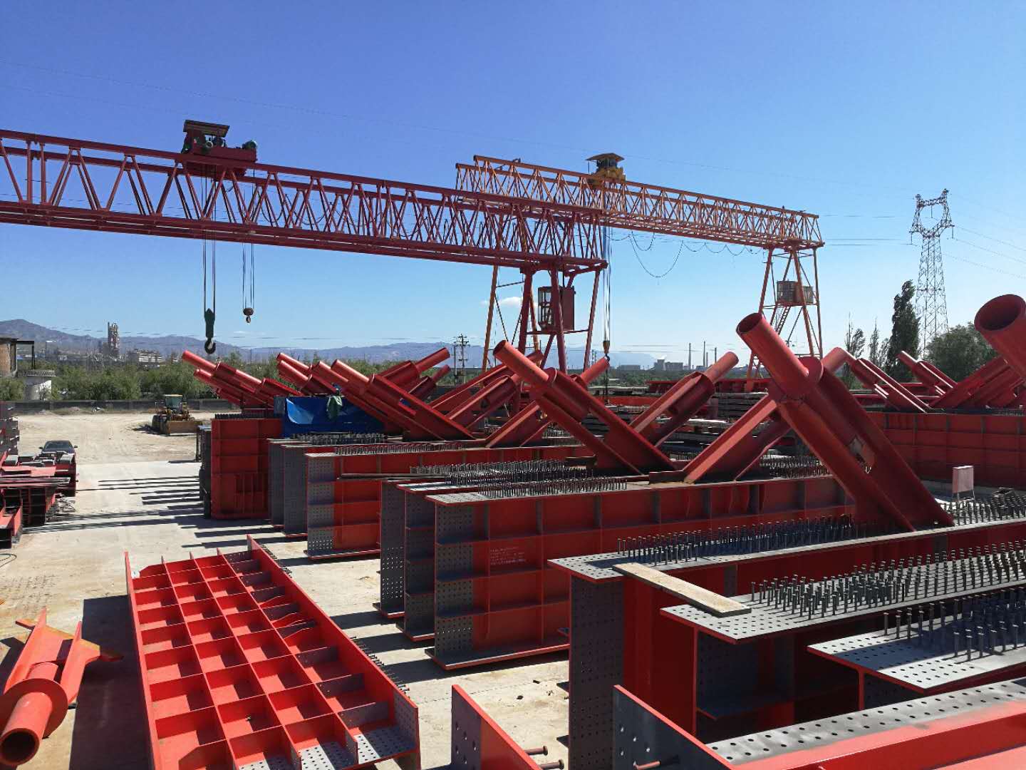 山西側(cè)10號墩橫梁單元件已完成6件,3件正在拼焊中