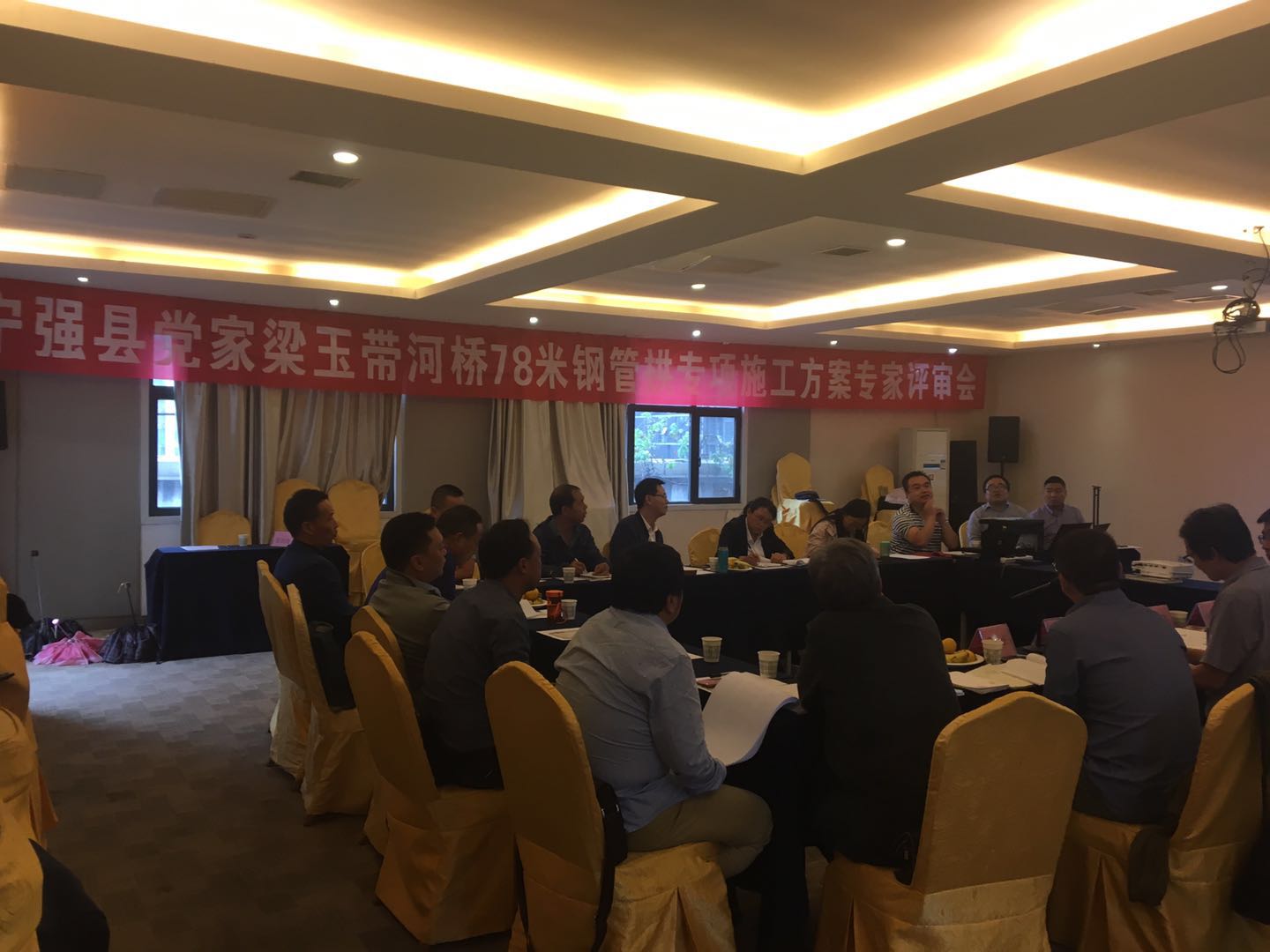 2018年9月15日下午,寧強縣住房和城鄉建設管理局在西安市召開了寧強縣黨家梁玉帶河橋78米鋼管拱專項施工方案專家評審會,寧強縣住房和城鄉建設管理局、陜西通 宇公路研究所有限公司、漢中市工程建設監理公司、西安長大公路工程檢測中心、陜西建工第十建設集團有限公司、陜西博安機械工程有限公司等單位的代表參加了會議。