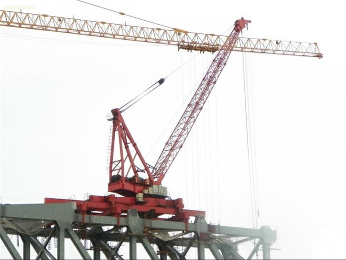 桅桿式起重機根據(jù)回轉(zhuǎn)支承機構的不同分為固定吊臂式、全回轉(zhuǎn)式、半回轉(zhuǎn)式三種結構形式。主要用于公路及跨江跨海大橋鋼桁架、橋門架、橋面板的架設施工。 大噸位固定吊臂式一般安裝在特制的駁船上作為專屬起升設備使用(起重船);剞D(zhuǎn)式主要由吊臂、三角架、回轉(zhuǎn)機構、變幅機構、錨固系統(tǒng)、縱移機構、起升機構、 梯子平臺、電氣系統(tǒng)、液壓系統(tǒng)等構成。 可在工作平臺上從橋兩岸對稱架設或從鋼桁架運輸船的正面或側(cè)面起吊,具備微調(diào)對位功能,吊鉤的工作區(qū)域范圍更大。